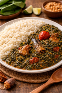 Rice and palava sauce is a nutritious and flavorful Ghanaian dish perfect for everyday meals. With its rich ingredients and simple steps, it delivers authentic taste and satisfying comfort.