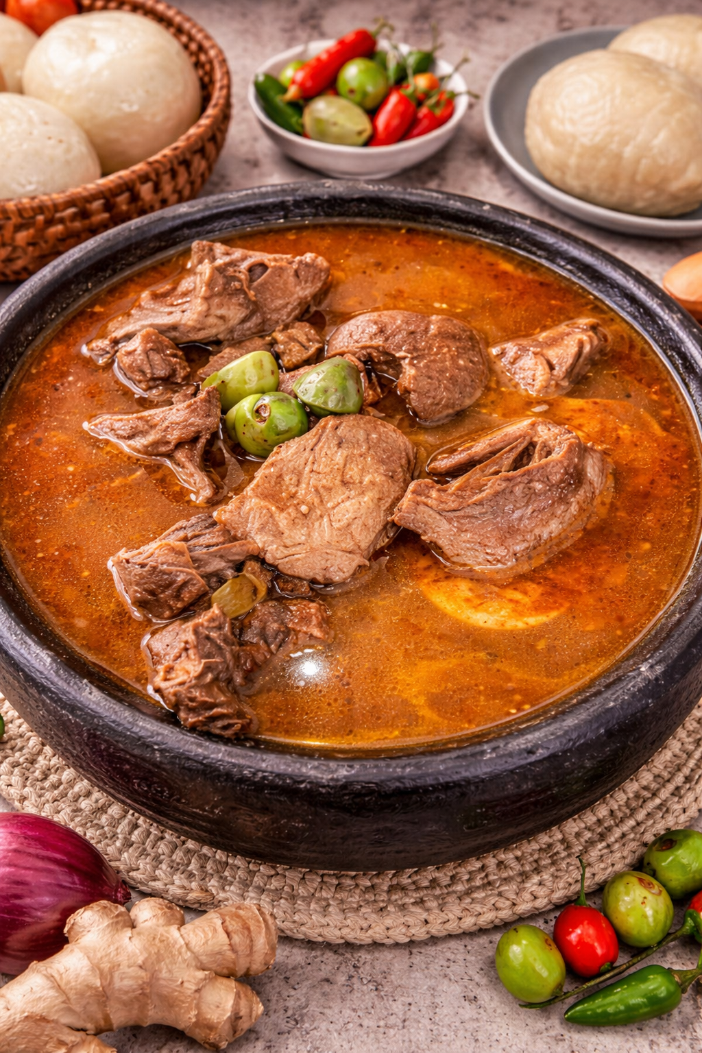 Serve hot with fufu, rice balls, or banku. Enjoy this authentic Ghanaian delicacy.
