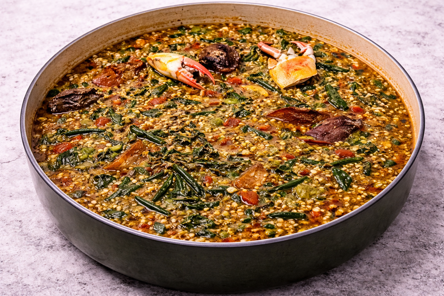 Allow the stew to cook for 10–15 minutes until the okra is soft but not overcooked.